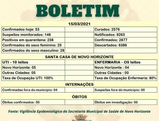 Positivos A Secretaria Municipal de Saúde informa que até às 12h desta terça-feira (16), foram registrados 4.113 casos positivos de Covid-19. Dos casos positivos de Penápolis, 24 pacientes estão internados, 582 pessoas estão em quarentena […]
