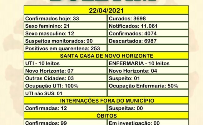 BOLETIM COVID 19 NOVO HORIZONTE