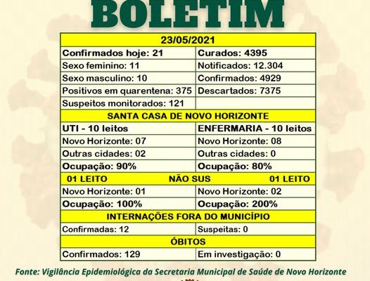 Na noite deste sábado (22) a Prefeitura de Novo Horizonte, através da Fiscalização da Vigilância Sanitária, em parceria com as Polícias Militar e Civil, Conselho Municipal da Criança e do Adolescente (CMDCA) e Conselho Tutelar […]