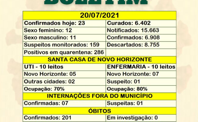 BOLETIM 20/07/2021ÓbitoMulher, 64 anos (Internada na Santa Casa) Quer ficar por dentro das notícias do Brasil e do mundo? Aproveite a promoção SKY TV por tempo limitado da melhor programação em Alta Definição e tenha […]