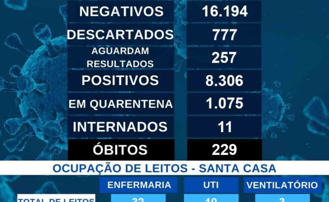 Positivos A Secretaria Municipal de Saúde informa que até as 16h desta terça-feira (20), foram registrados 8.306 casos positivos de Covid-19. Dos casos positivos de Penápolis, 11 pacientes estão internados, 1.075 pessoas estão em quarentena […]