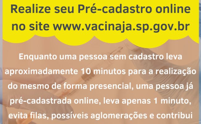 Você sabia que realizando seu Pré-cadastro online, você economiza tempo no ato da vacinação e agiliza os atendimentos nos Pontos de Vacinação?Enquanto uma pessoa sem cadastro leva aproximadamente 10 minutos para a realização do mesmo […]