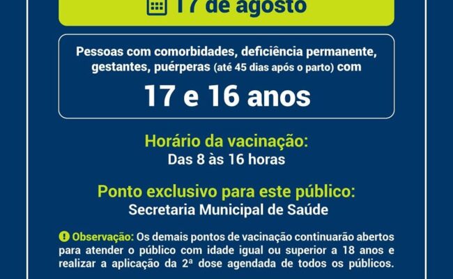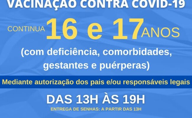 Esperança de um novo tempo! Adolescentes, de 16 e 17 anos, começam a ser vacinados contra covid-19 nesta terça-feira, dia 16. De acordo com o cronograma da Secretaria Municipal de Saúde, inicialmente, serão imunizados quem […]