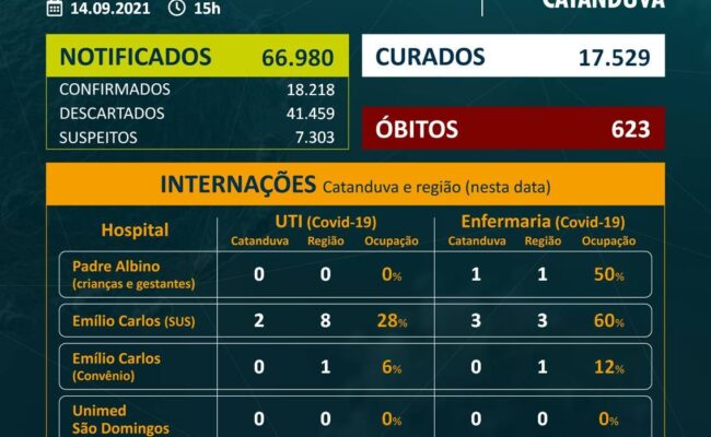 SEXTO DIA CONSECUTIVO SEM MORTE POR CORONAVÍRUS EM CATANDUVA Boa notícia! A Prefeitura de Catanduva apresenta o Boletim do Coronavírus pelo sexto dia consecutivo sem notificação de óbito, nesta terça-feira, dia 14 de setembro. Os […]