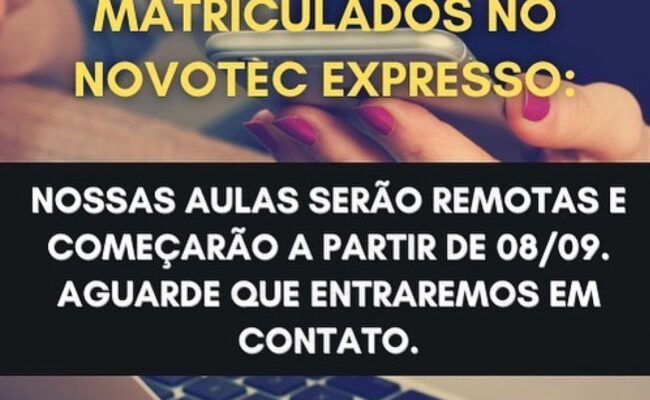 @etecnh Atenção alunos matriculados no Novotec Expresso: Nossas aulas serão remotas e começarão a partir de 08/09. Aguarde que entraremos em contato. Quer ficar por dentro das notícias do Brasil e do mundo? Aproveite a […]
