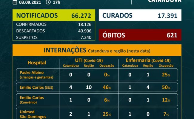 CATANDUVA CONFIRMA MAIS UM ÓBITO POR CORONAVÍRUS Óbito confirmado: 02/09 – Mulher, 80 anos, Hospital Escola Emílio Carlos. Veja mais informações no site www.catanduva.sp.gov.br/coronavirus Coronavírus – Prefeitura Municipal de CatanduvaHistórico de Boletins – ACESSE AQUI Histórico […]