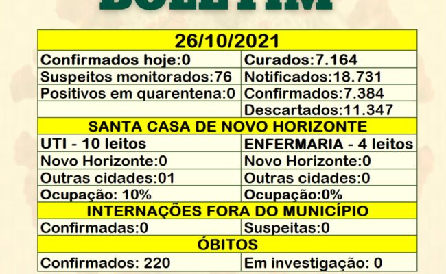 BOLETIM COVID 19 NOVO HORIZONTE
