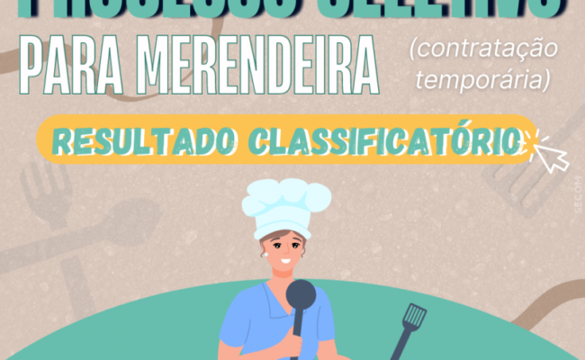 PREFEITURA DIVULGA RESULTADO DO PROCESSO SELETIVO DE MERENDEIRA