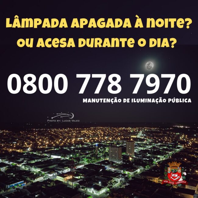 A Diretoria de Projetos, Posturas e Iluminação Pública tem um número exclusivo para que o municípe solicite manutenção. O Diretor da Pasta, Gustavo Dalla Dea, pede que ao solicitar a troca de lâmpada forneça o número do poste ou endereço completo da casa em frente, possibilitando que o local seja encontrado para realização do serviço. Não esqueça! Tem lâmpada apagada à noite? Ou lâmpada acesa durante o dia? LIGUE 0800 778 7970 Segunda a sexta-feira, das 7h30 às 16hLarissa CorrêaDiretoria de Comunicação PMNH