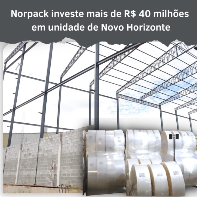 Os novos investimentos da Norpack serão a construção de um novo barracão, com mais de 1.500m² e a compra de uma máquina, única no Brasil, que produzirá de 60 a 70 toneladas por mês de embalagens. O responsável pela Norpack Aníbal Neto, empresário que acredita em Novo Horizonte, reforça o compromisso de contribuir com o desenvolvimento do município e oferecerá com os novos investimentos mais dez postos de trabalho. O setor de embalagens é fundamental para o desenvolvimento econômico e social do país, contribuindo na geração de empregos e fomentando a tecnologia. “Mesmo com complicações no setor, permanecemos trabalhando de maneira profissional e ética com todos os envolvidos, clientes, fornecedores e colaboradores. E tenho defendido dentro do Grupo Artvac a permanência da unidade em Novo Horizonte, pois, acredito no potencial do município e conto com o apoio da gestão municipal”, acrescenta Aníbal.Entre os produtos oferecidos pelo grupo estão: embalagens para frigoríficos, BM100, bisnagas laminadas, filmes para termoformagem, metalizadas, filmes laminados e lacres termoencolhíveis.