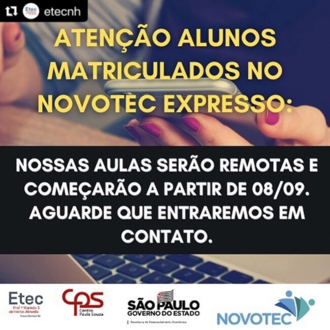Atenção alunos matriculados no Novotec Expresso: