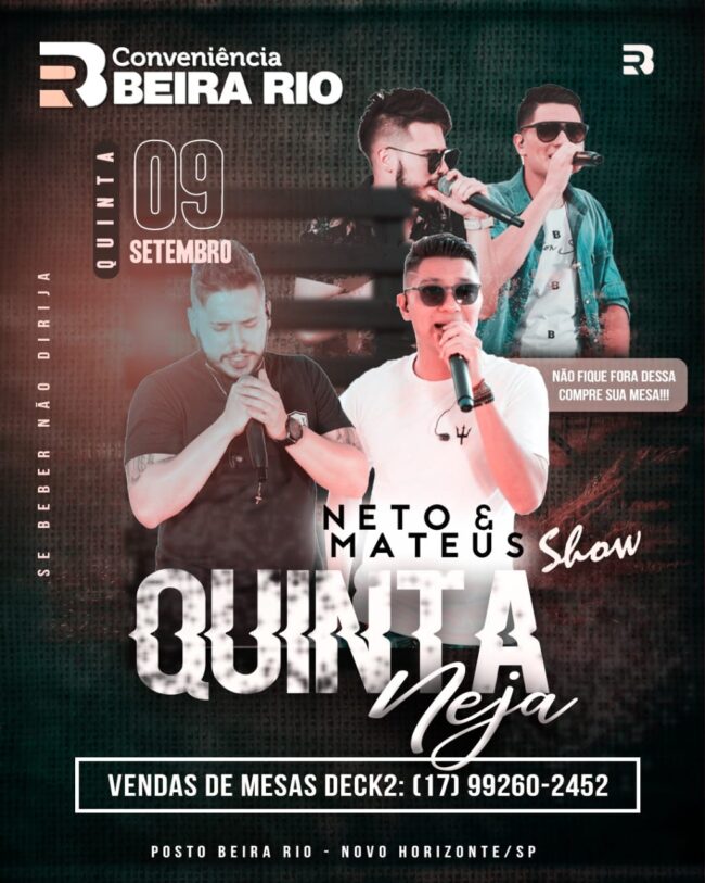 Quinta feira. Com vendas de mesas no DECK do Palco! Ligue para comprar sua mesa e para mais informações (17) 99260 2452!