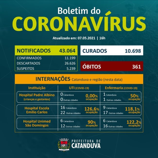 CATANDUVA CONFIRMA MAIS QUATRO ÓBITOS POR CORONAVÍRUS