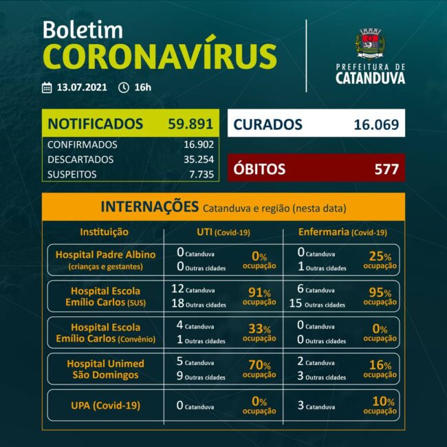 CATANDUVA CONFIRMA MAIS DOIS ÓBITOS POR CORONAVÍRUS.