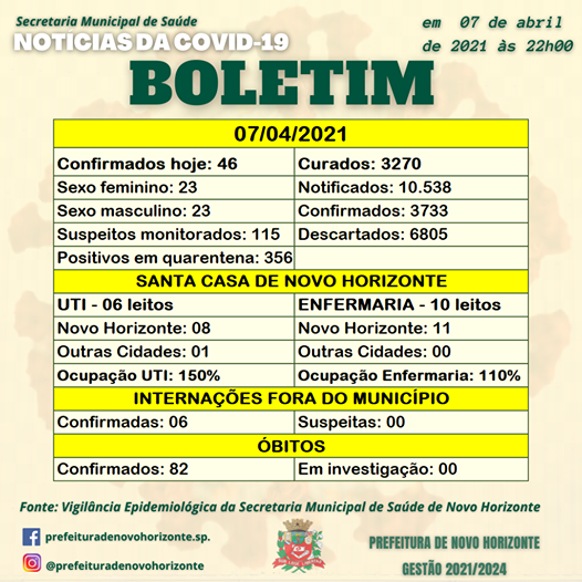 BOLETIM COVID 19 NOVO HORIZONTE
