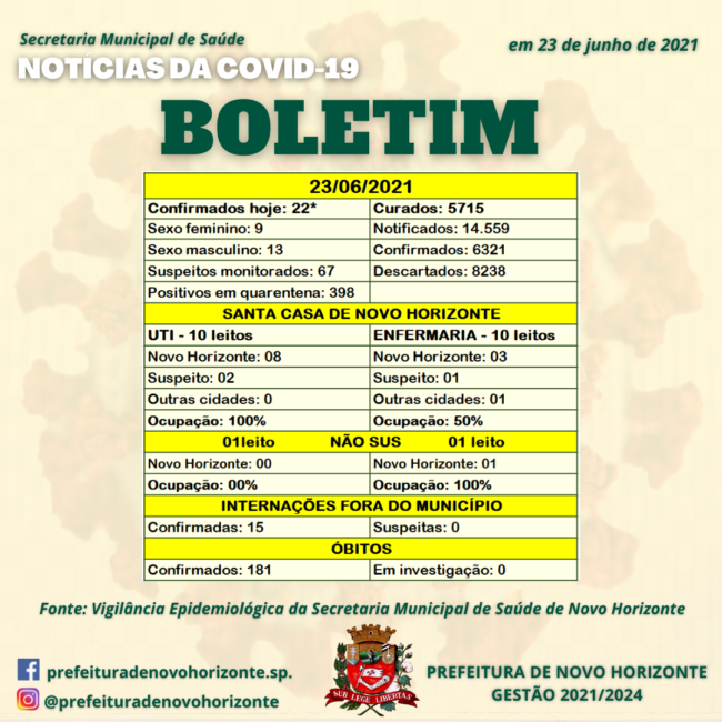 BOLETIM COVID 19 NOVO HORIZONTE