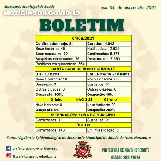 BOLETIM COVID 19 NOVO HORIZONTE SP
