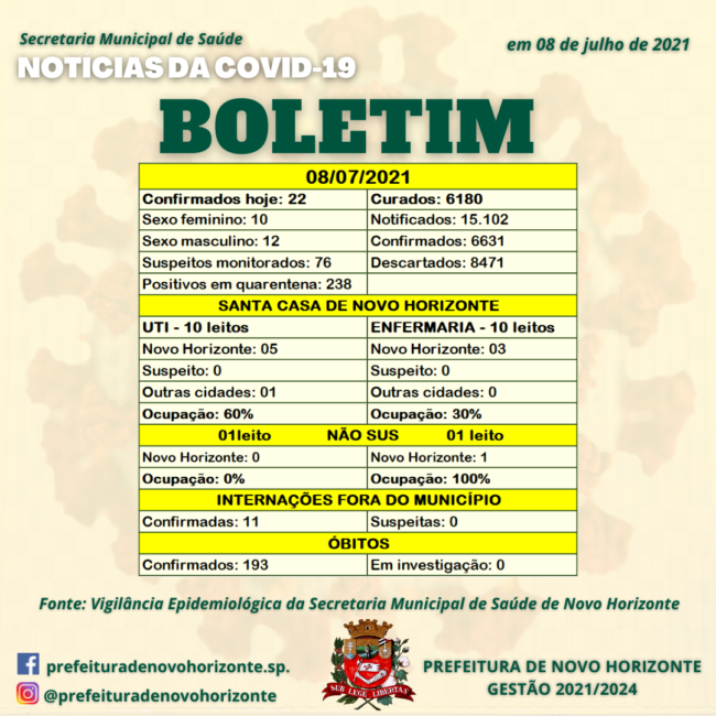 BOLETIM COVID 19 NOVO HORIZONTE SP