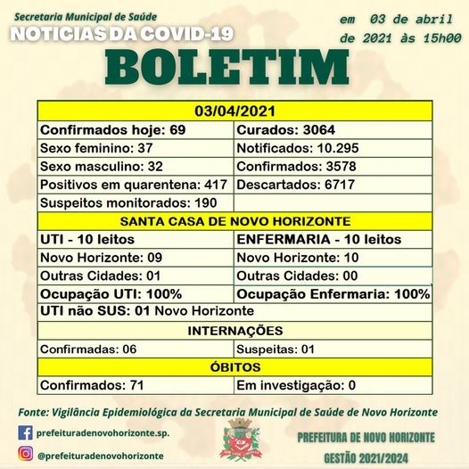 BOLETIM COVID 19 NOVO HORIZONTE SP