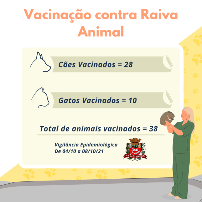 É importante ressaltar que nosso município recebe mensalmente 200 doses de vacina contra raiva animal. Realize o agendamento pelo telefone da vigilância epidemiológica 3542-9926.