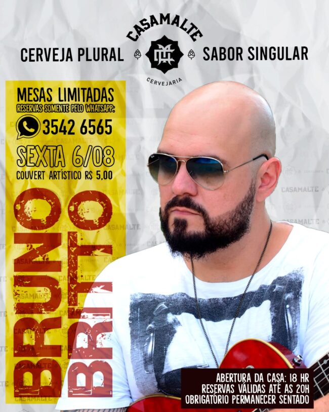 O bom dia desse domingo vem marcando um encontro com você, nós e o bom rock acústico do @brunobrittooficial Te vemos na sexta-feira! Cheers!!!