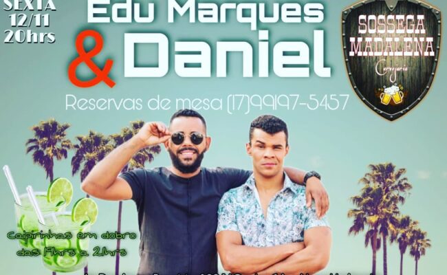 HOJE TEM SHOW DA DUPLA EDU MARQUES E DANIEL NO SOSSEGA MADALENA