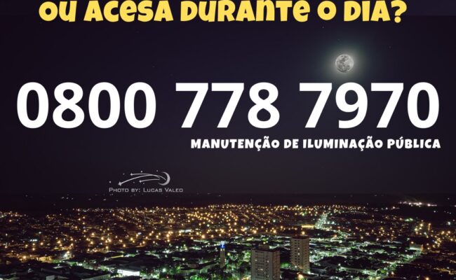 A DIRETORIA DE PROJETOS, POSTURAS E ILUMINAÇÃO PÚBLICA TEM UM NÚMERO EXCLUSIVO PARA QUE O MUNICIPE SOLICITE MANUTENÇÃO