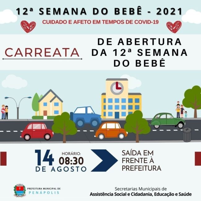 A Prefeitura de Penápolis convida toda a comunidade para participar das atividades que serão realizadas em comemoração à 12ª Semana do Bebê de Penápolis que acontece de 14 a 20 de agosto.