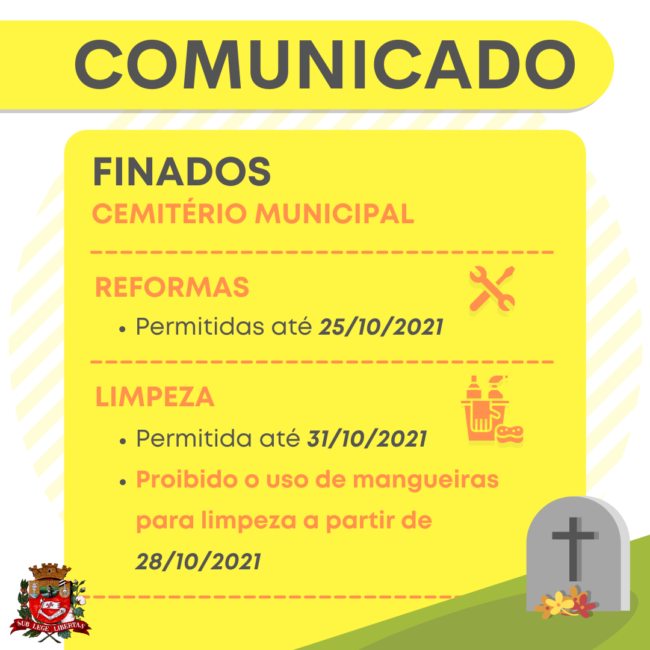 · Irá realizar alguma reforma ou limpeza no cemitério?Leia o comunicado.