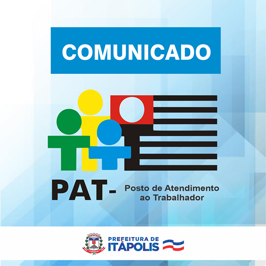 A Secretaria Municipal de Desenvolvimento Econômico comunica que, a partir de hoje (1º/3), os atendimentos no PAT (Posto de Atendimento ao Trabalhador) passam a ser feitos por agendamentos.