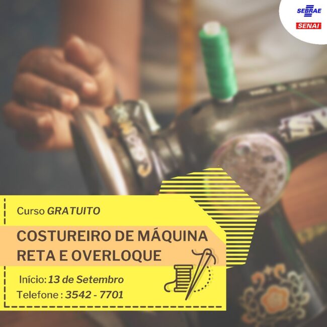 • Totalmente gratuito• Carga Horária: 160 horas• Período: 13/09/2021 à 11/11/21• *Aulas: 2ª, 3ª, 4ª, 5ª e 6ª• *Horário: das 13h às 17h ou das 18h às 22hAs inscrições começam a partir de amanhã (30) e se encerram no dia 10 de setembro, para se inscrever basta ir até a Rua 7 de setembro, nº 711-Centro e falar com a Juliana.O curso irá ocorrer no centro de geração de renda Rua Manoel Paulino De Oliveira, 436-Jardim Alvorada e será apenas para aqueles que realizarem as inscrições dentro do prazo estipulado.Para saber mais ligue: 3542-7701