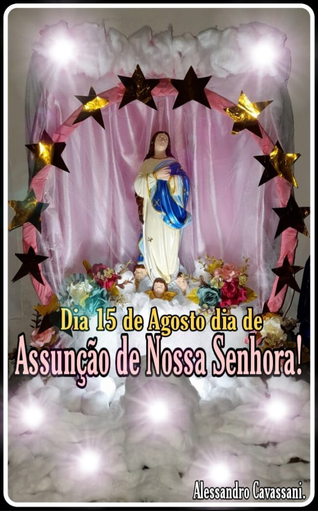 Igreja Católica Celebra este final de Semana, Assunção de Nossa Senhora.Maria, assunta em corpo e alma aos céus. Contemplação glorioso do Santo Rosário.Do Céu, a Santíssima Virgem intercede pelos seus filhos e cuida deles. A Assunção de Nossa Senhora, Esperança da nossa ressurreição gloriosa AMEM