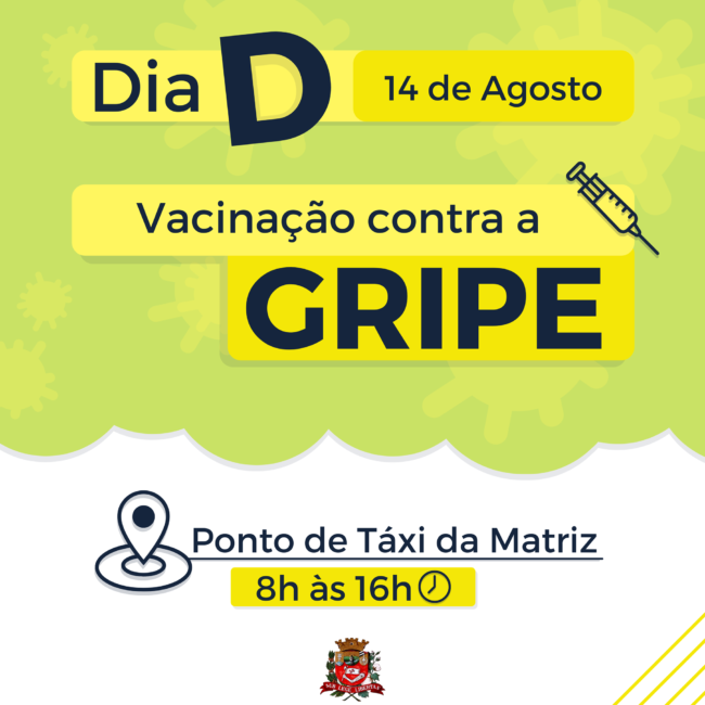 A Prefeitura de Novo Horizonte, através da Secretaria Municipal da Saúde e da Vigilância Epidemiológica, informa que está aberta a vacinação contra Gripe (Influenza) para todas as pessoas com mais de 6 (seis) meses de idade e que realizará neste sábado, 14/08, um Dia D para imunização. O Dia D será das 08h às 16h e acontecerá no Ponto de Táxi da Igreja Matriz, localizado na Praça Dr Euclydes Cardoso Castilho – Centro. É obrigatório apresentar documento de identidade com foto e CPF. Pessoas que estiverem prestes a serem vacinadas contra a Covid-19, a recomendação é tomar primeiro o imunizante contra o novo coronavírus. Após o período mínimo de 15 dias, é possível realizar a vacina contra Gripe (Influenza). Pessoas que tenham feito a vacina da Covid-19 recentemente devem aguardar o intervalo de 15 dias para realização da vacina contra a Gripe (Influenza). Prevenir é a melhor forma de cuidar da saúde. Vacine-se!