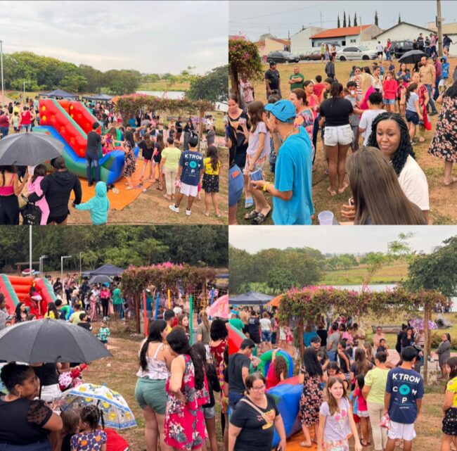 O evento reuniu centena de crianças de toda a nossa cidade e foi marcado por muita diversão e alegria. Além brinquedos infláveis, cama elástica e pula pula, tivemos também distribuição gratuita de pipoca, algodão doce e picolé para a garotada. Parabéns a vereador BGO pela iniciativa que já se tornou uma tradições em Novo Horizonte e que cresce ano a ano. Foto: Divulgação (Alvani)