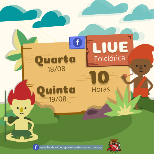 A Prefeitura de Novo Horizonte, através da Diretoria de Desenvolvimento Econômico e Cultural, comemora o dia do Folclore, através da realização de lives com contação de histórias, nos dias 18 e 19 de agosto, às 10 horas da manhã, e uma intervenção de rua na sexta-feira (20).As lives irão ocorrer através do Facebook da Prefeitura de Novo Horizonte.