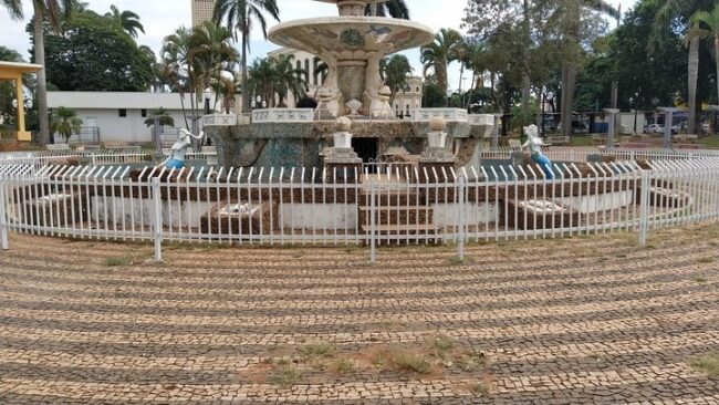 A Diretoria de Obras e Serviços está iniciando a revitalização da Praça Dr Euclydes Cardoso Castilho, a Praça da Fonte, com pintura dos bancos, grades, canteiros e guias. @ Novo Horizonte, Sao Paulo