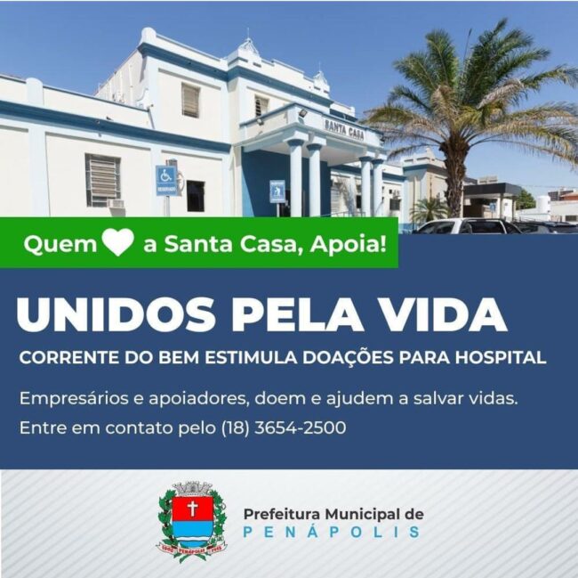 A Prefeitura de Penápolis realiza desde março a campanha Unidos pela Santa Casa, com o objetivo de arrecadar doações para o custeio do hospital, que atende a cidade e toda comarca. Desde então, dezenas de empresas, entidades e pessoas físicas têm aderido à proposta e colaborado de forma significativa.