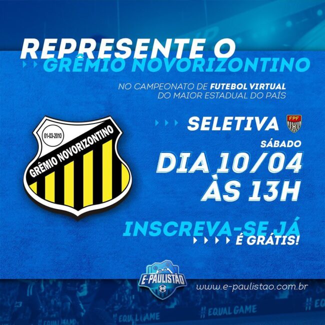 A competição é aberta para qualquer um que quiser se inscrever e a Seletiva de nosso Grêmio novorizontino esta marcada para amanhã as 13 horas e é quando ficaremos conhecendo o representante do Tigre do Vale na competição.