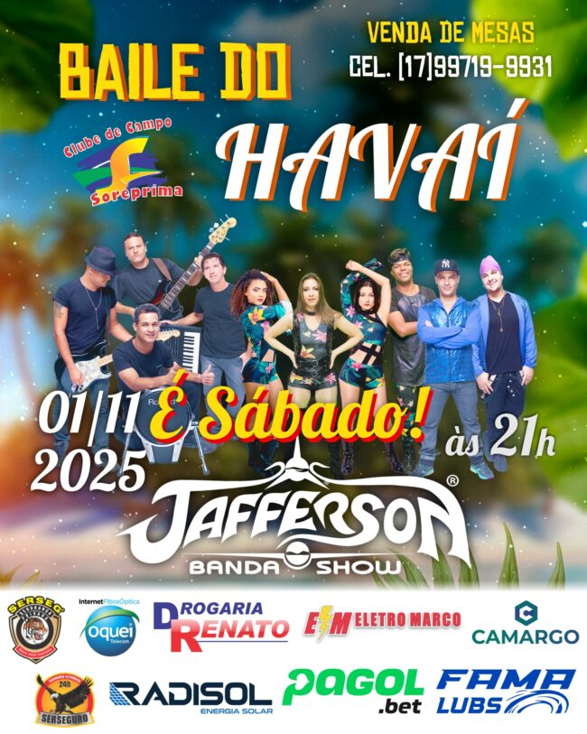 O baile acontece amanhã no Clube de Campo á partir das 21 horas e com a animação de uma das melhores bandas show de nosso pais, a premiada Jafferson Banda Show. que subirá ao palco com um repertório diversificado, dançarinas e uma apresentação cheia de energia, ideal para não deixar ninguém parado.