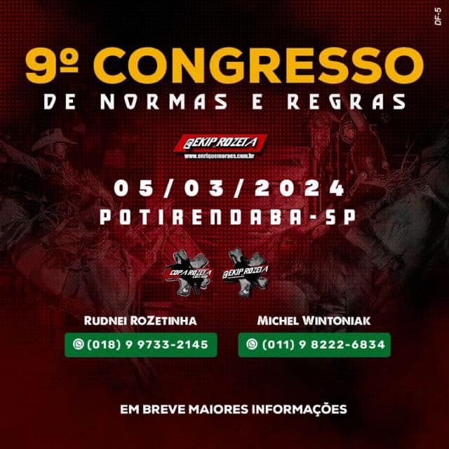E como sempre ocorre em todo inicio de temporada um dos maiores campeonatos de rodeio da America Latina, a Ekip Rozeta do companheiro Enrique Moraes promove o seu tradicional Congresso de Normas e Regras para o rodeio. O evento chega a sua 9ª.edição e ocorrere no dia de hoje na cidade de Potirendaba/Sp.