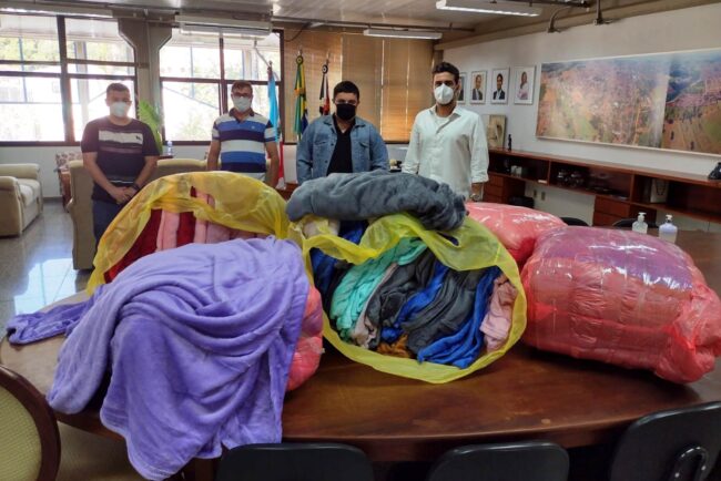 O prefeito Caique Rossi recebeu nesta semana a visita do empresário Leandro Ramires Garcia, da T.A.L. Tambores, que fez a doação de 100 unidades de mantas de microfibra para a Santa Casa de Misericórdia de Penápolis. O empresário contou que soube da necessidade de mantas e cobertores para pacientes da Santa Casa, principalmente neste período de inverno e decidiu colaborar com o hospital. “Sou penapolense e sei da importância da Santa Casa para a nossa cidade. Eu já precisei do hospital, minha família já precisou e fomos muito bem atendidos. Por isso, sempre quer posso, faço questão de ajudar nossa Santa Casa”, disse Leandro. O prefeito Caique Rossi agradeceu a doação das mantas e voltou a ressaltar que toda ajuda é muito bem-vinda para a Santa Casa de Penápolis. Secom – PMP