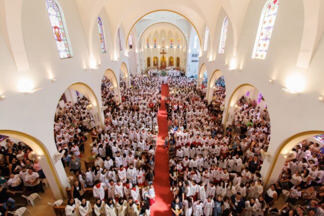 No domingo (21) nossa Paróquia São José da Santíssima Trindade viveu um dia inesquecível ao acolher mais de 1.500 coroinhas e acólitos de toda a Diocese para o grande Encontro Diocesano de Acólitos e Coroinhas.A manhã começou com a Santa Missa solene, presidida por nosso bispo diocesano Dom José Benedito, com a presença de diversos padres, de nosso diácono permanente, dos seminaristas de nossa diocese e do belo canto do Coral Infanto-Juvenil Estrela da Manhã, que deu ainda mais vida e emoção à celebração.