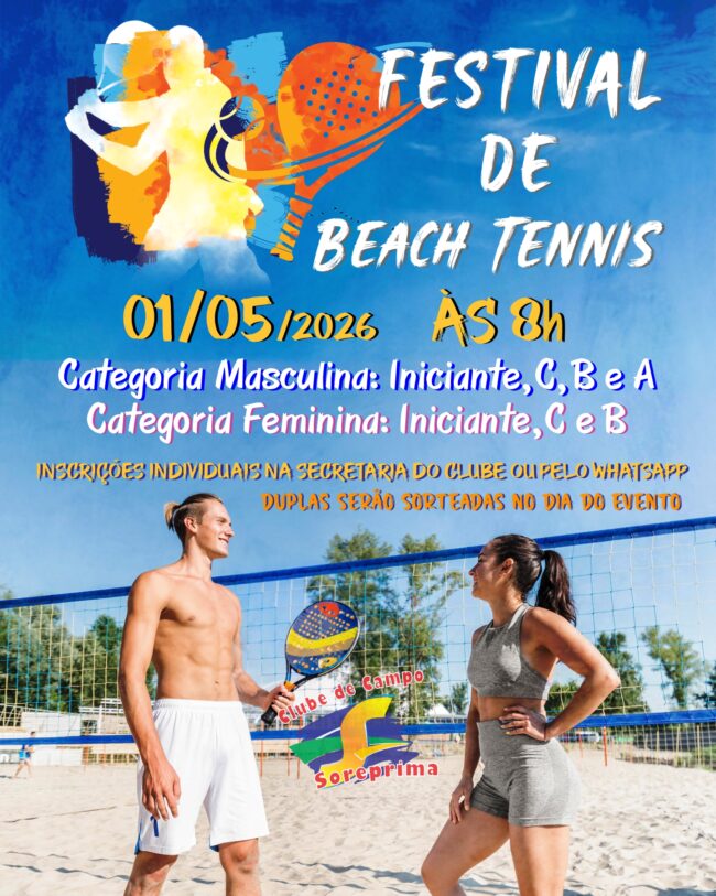 Logo pela manhã acontece o Festival de Beach Tênis nas categorias iniciante masculina e feminina, o Torneio de Futevolei, nas categorias feminina, masculina e mista e o Torneio de Truco para associados maiores de 18 anos e no período da tarde, para fechar com chave de ouro o feriadão do trabalhador, teremos á partir das 16 horas a grande final do Campeonato Infantil de Futebol. Parabéns a família Soreprima !!! Artes: Sore (Alvani)