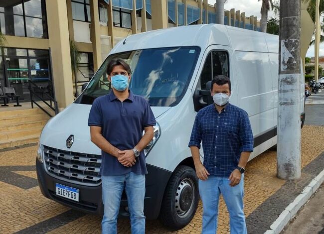 O prefeito Caique Rossi e o secretário municipal de Educação, o professor José Carlos Pansonato Alves, receberam o novo veículo que ficou exposto em frente ao Paço Municipal e já foi direcionado para o serviço.