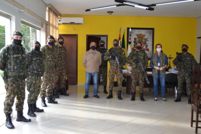 Nesta terça-feira (25), uma equipe do Exército Brasileiro esteve no município para um trabalho de sanitização em espaços públicos, colaborando assim com a Secretaria de Saúde nas ações contra a Covid-19. A ação dos homens do 37º Batalhão de Infantaria Leve, da cidade de Lins, aconteceu através de um pedido do Vereador e Presidente da Câmara Municipal, Luciano Aschkar, ao Comando do Exército. A equipe realizou a sanitização em dez pontos públicos, entre eles as Unidades Básicas de Saúde, do Jardim Santa Clara, São Benedito, Alvorada, São Vicente e Central, Santa Casa de Misericórdia, além do Centro de Atendimento Covid-19, Centro de Reabilitação Pós-Covid-19, e Lar de Velhice Maria Souza Spinola. “Essa colaboração do Exército no combate ao coronavírus no nosso município é de extrema importância, principalmente neste momento de agravamento da pandemia. Agradecemos ao Vereador Luciano pela preocupação com o município”, disse o Prefeito Fabiano Belentani.Larissa CorrêaDiretoria de Comunicação PMNH