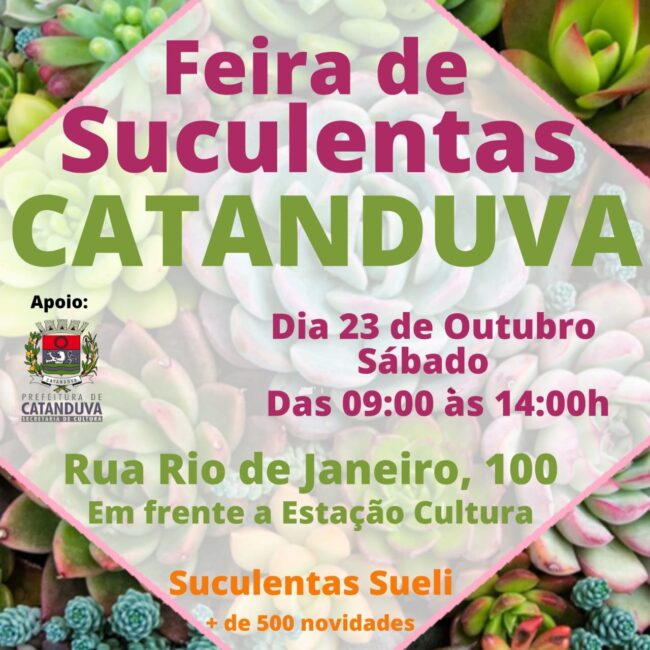 Opção para presentear e mudar o visual de um ambiente em casa! A Estação Cultura Deca Ruette recebe, neste sábado, dia 23, a Feira de Suculentas. As plantas ficarão expostas na área externa do espaço, respeitando as regras de enfrentamento à covid-19. O uso de máscara é obrigatório. A programação começa 9 horas e segue até as 14 horas com entrada gratuita.