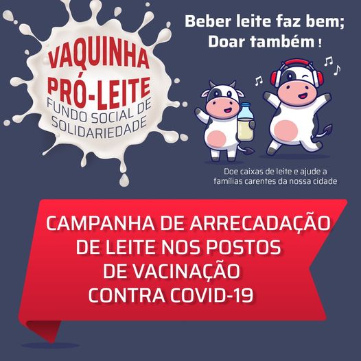 O Fundo Social de Solidariedade de Catanduva promove campanha de arrecadação de caixa de leite nos quatro pontos de vacinação contra a covid-19. São quatro locais para imunização e, consequentemente, para doações de leite: Secretaria Municipal de Saúde, Centro Dia do Idoso, Cras Bom Pastor e drive-thru do Aeroporto.