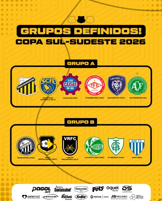 O Grêmio Novorizontino conheceu , quais serão seus adversários na disputa da 1ª edição da Copa Sul-Sudeste. A Confederação Brasileira de Futebol (CBF) sorteou, em sua sede no Rio de Janeiro, os grupos da edição inaugural. O evento posicionou as 12 equipes participantes em duas chaves, com seis times em cada.