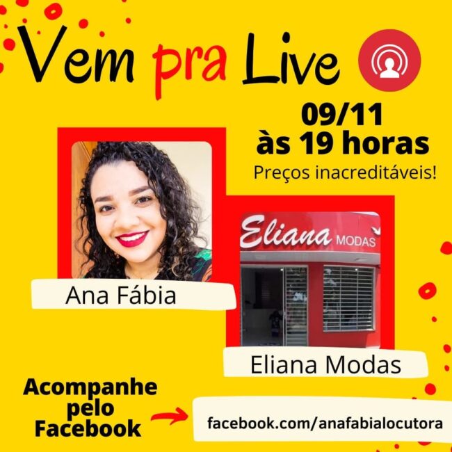 Hoje tem a Mega Live Eliana Modas Com preço Imbatíveis e Sorteios de Beleza com Danny Gomes do Salão Mui Bella ,e Muito mais Sorteios pra quem participa durante td Live.