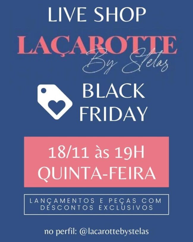 Hoje é nossa live BLACK FRIDAY Apresentação com @bellapezzo Teremos muitas exclusividades para quem estiver ao vivo